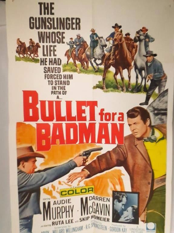 Large movie poster for the 1964 film "Bullet for a Bad Man" Starring Audie Murphy, Darren Gavin, Rita Lee and Skip Hamier. Very good condition, no tears or stains. 40x27" good colors.