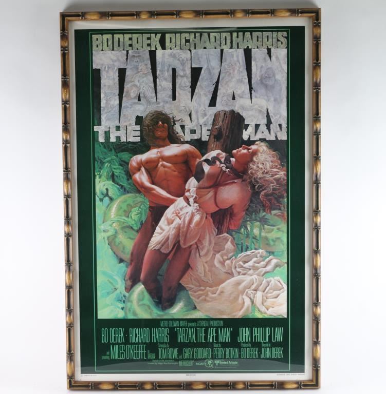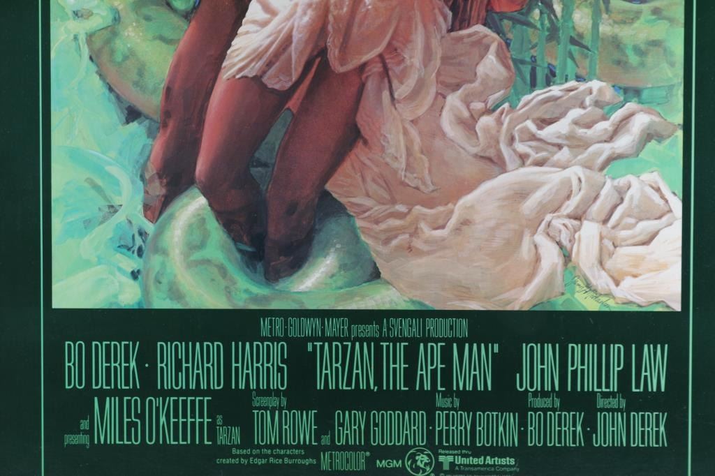 From "Tarzan the Ape Man", starring Bo Derek and Richard Harris. Marked "Advance one sheet Tarzan" Lower right and "NSS 810120" bottom middle. Excellent condition. Frame dimensions: 42"H x 39"W. From the Joseph Musso Collection
