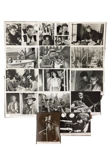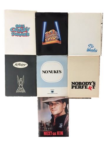 Collection of 7 press kits with black and white publicity stills included, sized mainly 8"x10"s from various movie studios. (1970's-80's). From Columbia Pictures "Nobody's Perfekt" (1981) includes press kit and 11 stills. From Warner Bros "No Nukes" (1979) includes 9 stills. From MGM " 9 1/2 Weeks"(1986) includes press kit and 2 stills. From 20th Century Fox "A Night In The Life Of Jimmy Reardon" (1988) includes press kit with 3 stills. From Tri Star Pictures "No Mercy" (1986) includes press kits with 9 stills. From Warner Bros "One Crazy Summer" (1986) includes press kit with 4 stills. From Warner Bros "Next Of Kin" (1989) includes press kits and 4 stills.