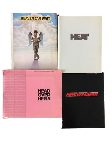 Collection of 4 press kits with black and white publicity stills included, sized mainly 8x10's from various movie studios.(1970's-80's) From Paramount Pictures "Heaven Can Wait" (1978) starring Warren Beatty as Joe Pendleton, Julia Christie as Betty Logan, and James Mason as Mr. Jordan, includes 11 stills. From United Artists "Head Over Heels"or "Chilly Scenes of Winter" (1979) starring John Heard as charles, Mary Beth Hunt as Laura, and Peter Riegart as Sam, includes 26 stills. From New Century Vista Films "Heat" (1986) starring Burt Reynolds as Nick Escalante, Peter MacNicol as Cyrus Kinnick, and Karen Young as Holly, includes 8 stills. From 20th Century Fox "Heart Like a Wheel" (1983) starring Bonnie Bedelia as Shirley, Leo Rossi as Jack, and Hoyt Axton as Tex Roque, includes 4 stills.