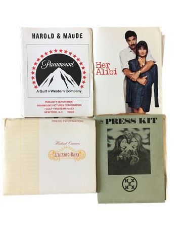 Collection of 4 press kits with black and white publicity stills included, sized mainly 8x10's from various movie studios. (1970's-80's). A small collection of ~ 50 stills from various movies also included as well. From United Artist "Heaven's Gate" (1980) starring Kris Kristofferson as James Averill, Christopher Walkin as Nathan Champion, and John Hurt as William c. Irvine, includes 31 stills. From Warner Brothers "Her Alibi"(1989) starring Tom Selleck as Phil Blackwood, Paulina Porizkova as Nina, and William Daniel as Sam, includes 4 stills. From Paramount Pictures "Harold and Maude" (1971) starring Ruth Gordon as Maude, Bud Cort as Harold, and Vivian Pickles as Mrs. Chasen, no stills included. From 20th Century Fox "Hex"(1973) starring Cristina Raines as Oriole, Gary Busey as Giblets, and Scott Glenn as Jimbang, includes 8 stills. Collection of stills include such movies as, "Here Come The Tigers" (1978), "Haunted Honeymoon" (1986), "High-Ballin" (1978), "Here We Go Round the Mulberry Bush" (1968).