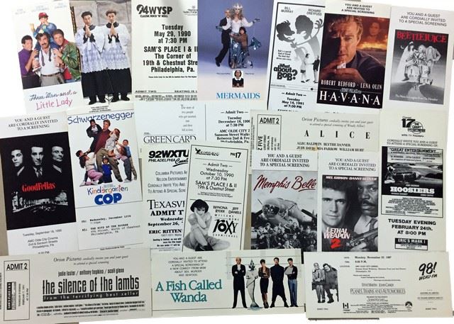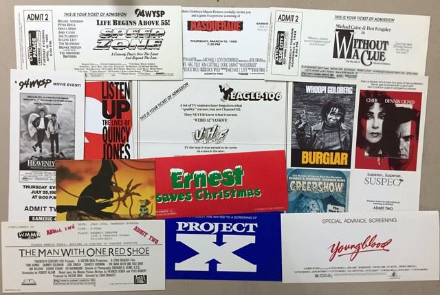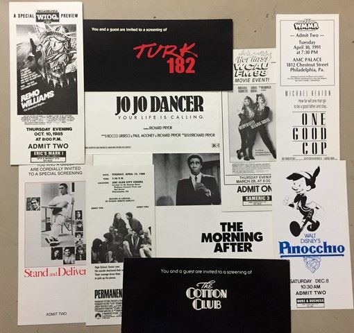Various screening invitations from a number of production companies, and studios, to screen movie releases. Some of the invitations included are from places such as Paramount Pictures, Orion, and TriStar, etc. Movies included in this collection are Walt Disney's Pinocchio, The Princess Bride, National Lampoon's Christmas Vacation, as well as many others.