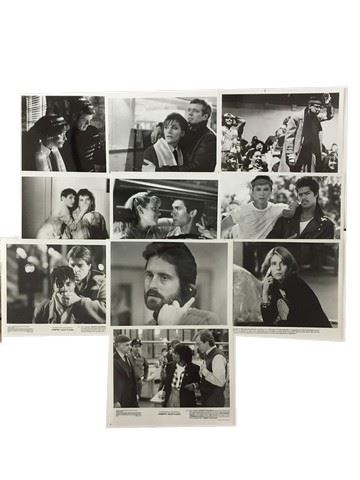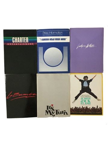 Collection of 6 press kits and with black and white publicity stills included, from various movies, sized mainly 8x10's. (1970's-90's). From Charter Entertainment "Keeping Track" (1987), From Universal Pictures "I Wanna Hold Your Hand"(1978), From New Century Vista Films "Lady In White" (1988), From Columbia Pictures "La Bamba" (1986), From Columbia Pictures "It's My Turn" (1980), From 20th Century Fox "Jumping Jack Flash" (1986).