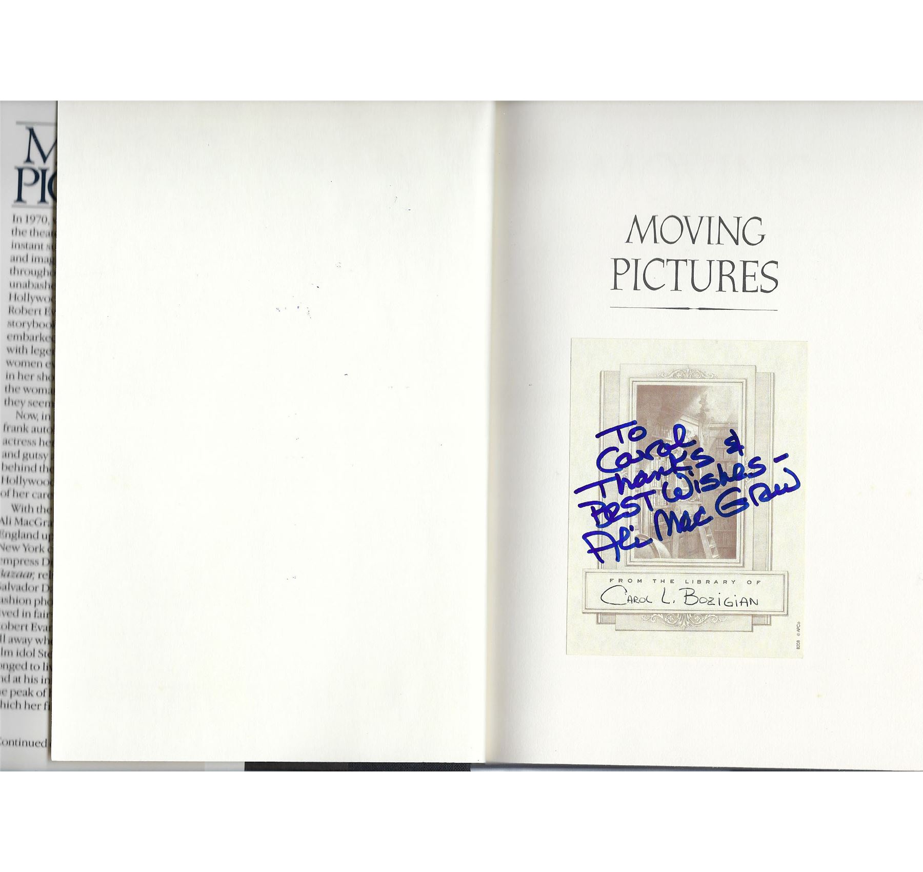 Moving Pictures signed autobiography autographed by Ali MacGraw