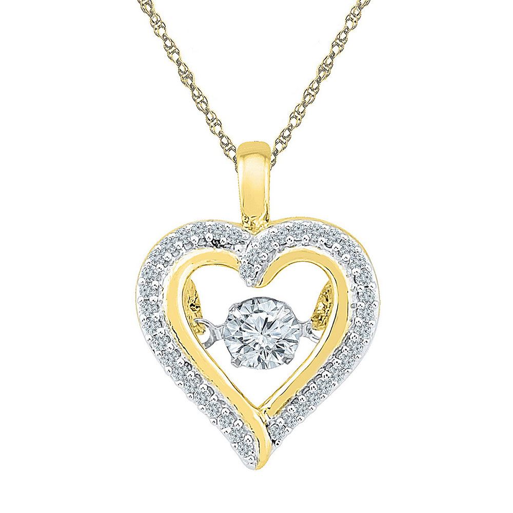 10kt Yellow Gold Womens Round Moving Twinkle Diamond Heart Outline Pendant 1/4 Cttw