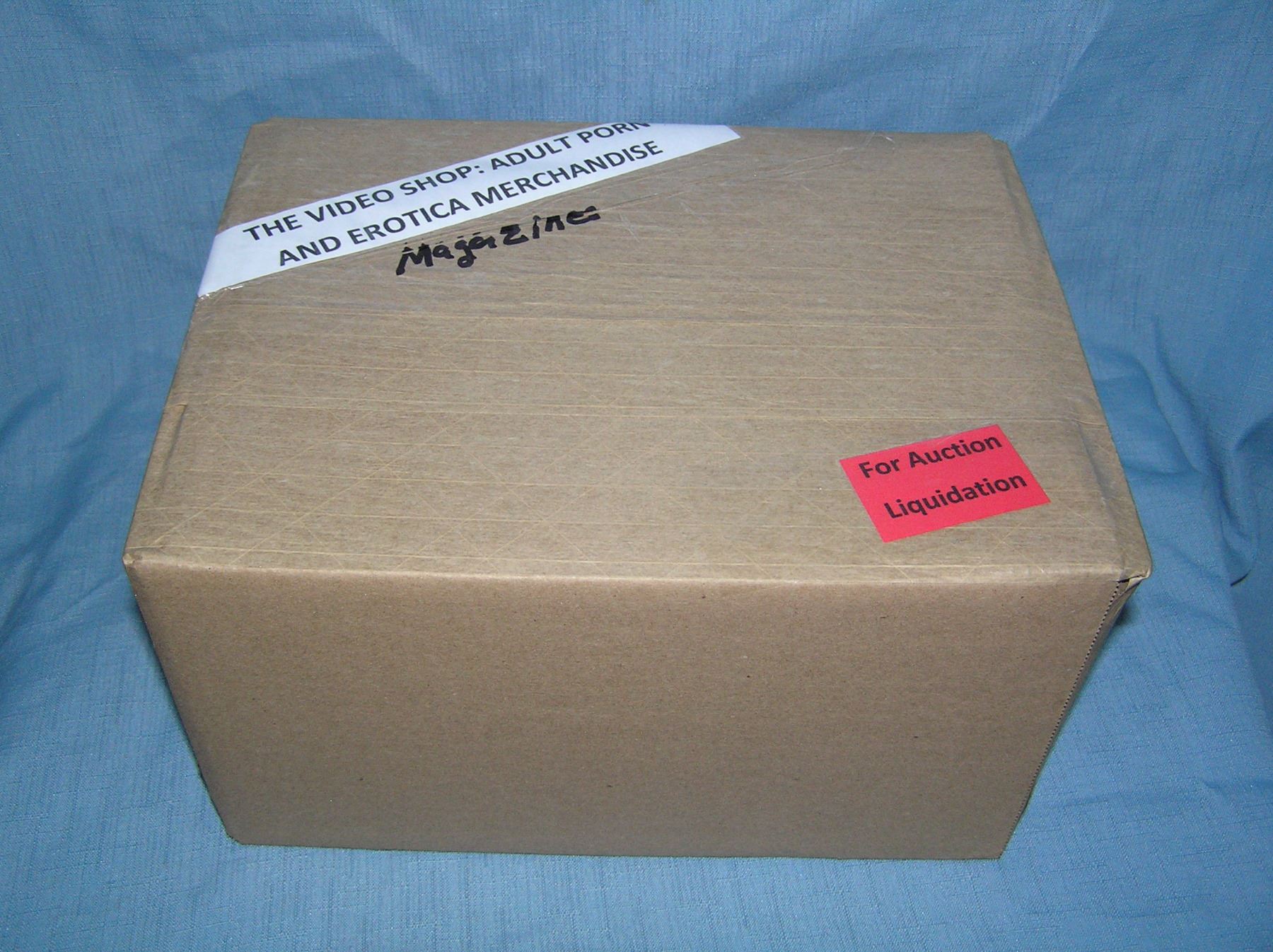 Moving and Storage Company mystery box lot marked The Video Shop: Adult Porn and Erotica Magazines part of a moving and storage company seized or unclaimed merchandise group sent to auction for liquidation est. value $125.00-150.00