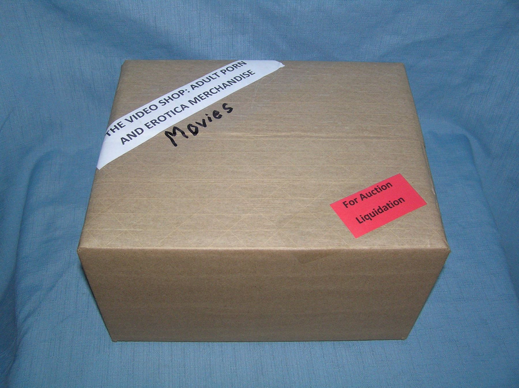 Moving and Storage Company mystery box lot marked The Video Shop: Adult Porn and Erotica Movies part of a moving and storage company seized or unclaimed merchandise group sent to auction for liquidation est. value 125.00-150.00