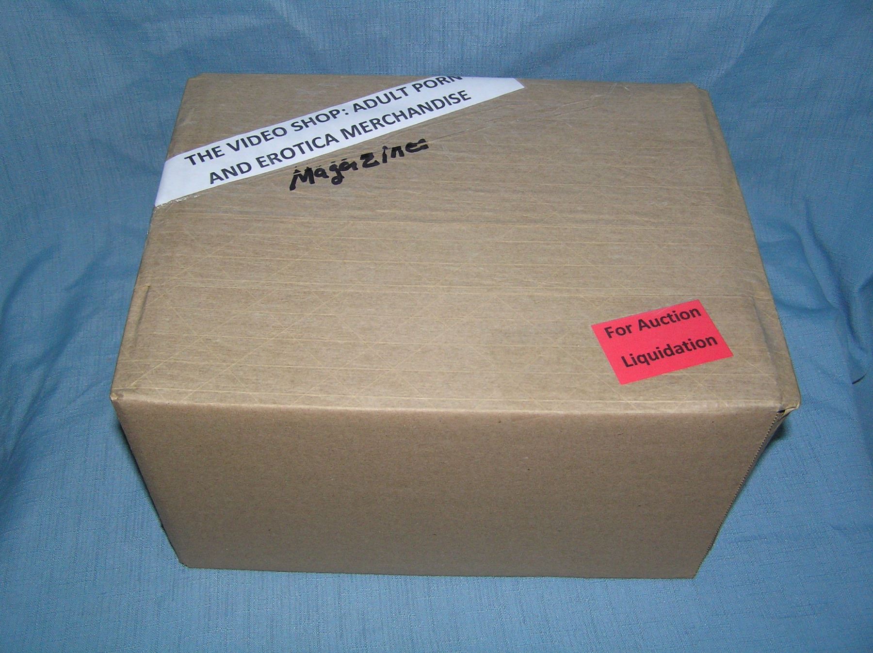 Moving and Storage Company mystery box lot marked The Video Shop: Adult Porn and Erotica Magazines part of a moving and storage company seized or unclaimed merchandise group sent to auction for liquidation est. value 125.00-150.00