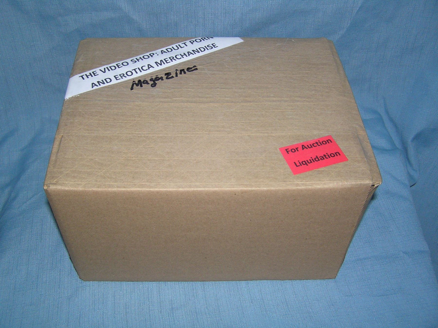 Moving and Storage Company mystery box lot marked The Video Shop: Adult Porn and Erotica Magazines part of a moving and storage company seized or unclaimed merchandise group sent to auction for liquidation est. value 125.00-150.00