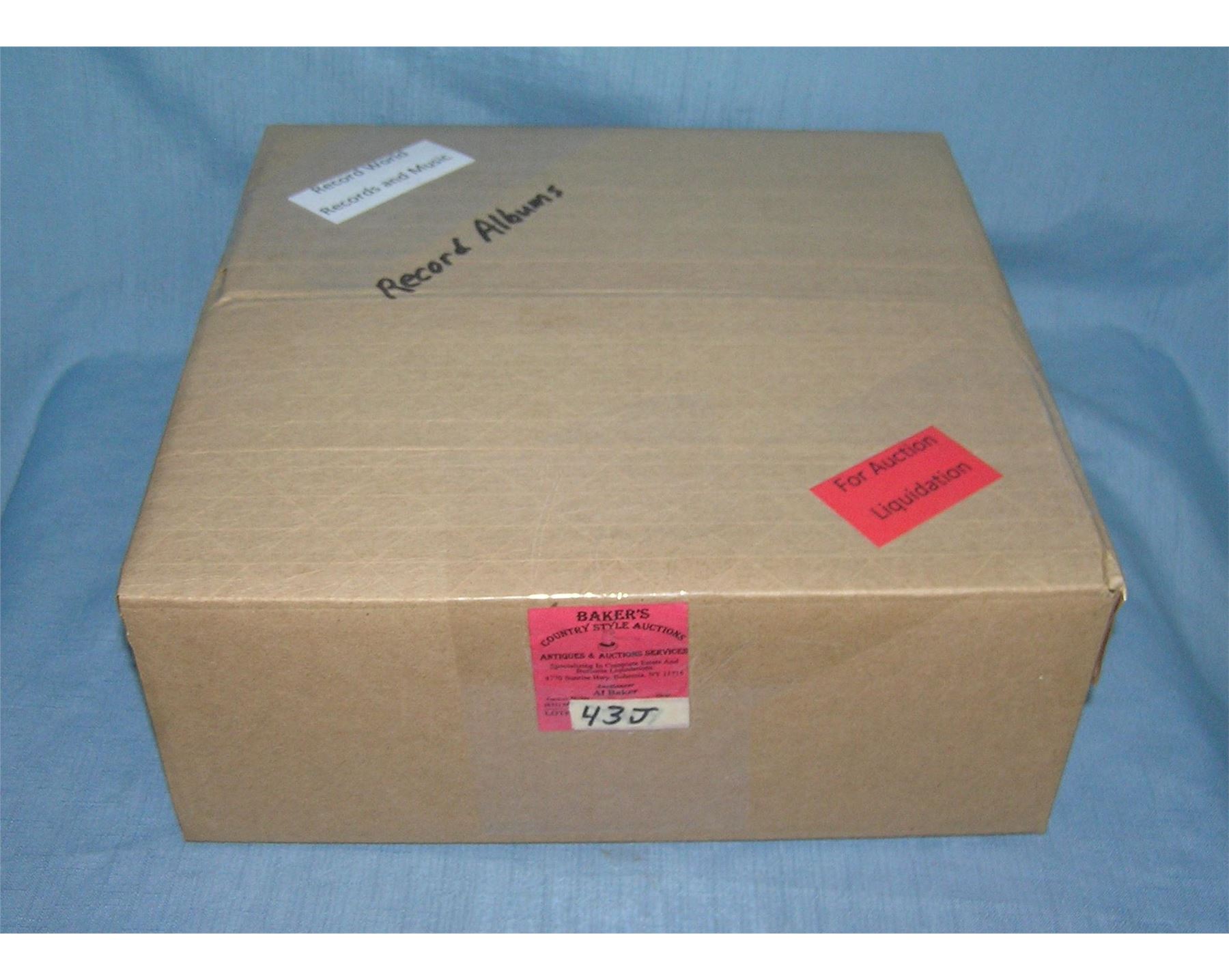 Moving and Storage Company mystery box lot marked Record World records and Music record albums part of a moving and storage company seized or unclaimed merchandise group sent to auction for liquidation contents removed from an old Long Island record store est. value $65.00-75.00