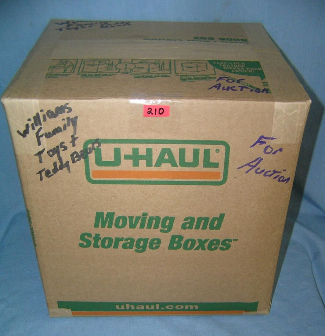 Moving and Storage Company mystery box lot marked William's family toys and Teddy Bears part of a moving and storage company seized or unclaimed merchandise group sent to auction for liquidation est. value $40.00-50.00