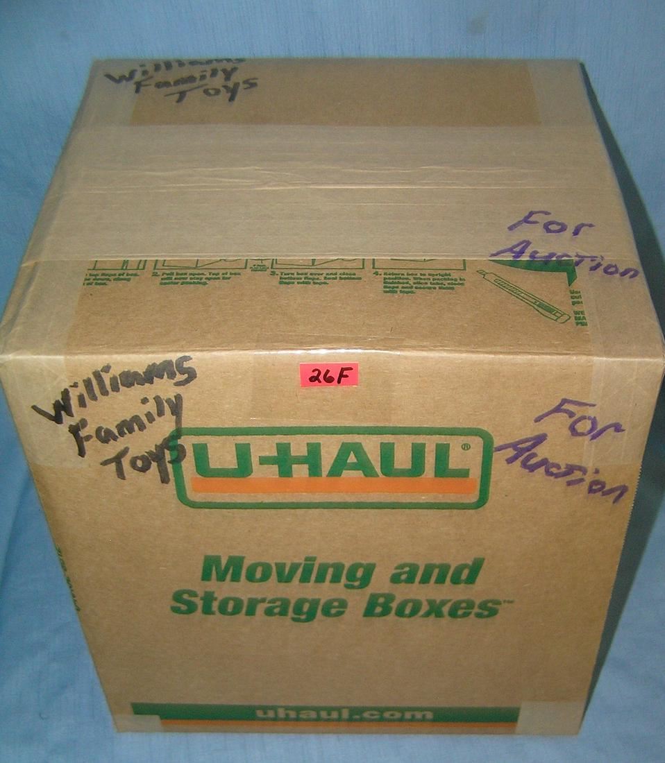 Moving and Storage Company mystery box lot marked William's family toys and tonka part of a moving and storage company seized or unclaimed merchandise group sent to auction for liquidation est. value $40.00-50.00