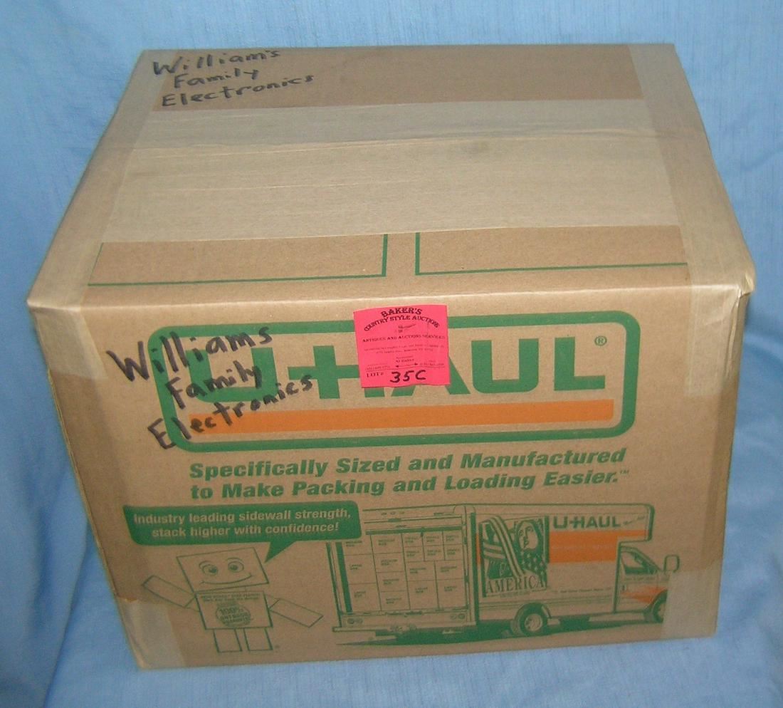 Moving and Storage Company mystery box lot marked part of a moving and storage company seized or unclaimed merchandise group sent to auction for liquidation  est. value $50.00-60.00