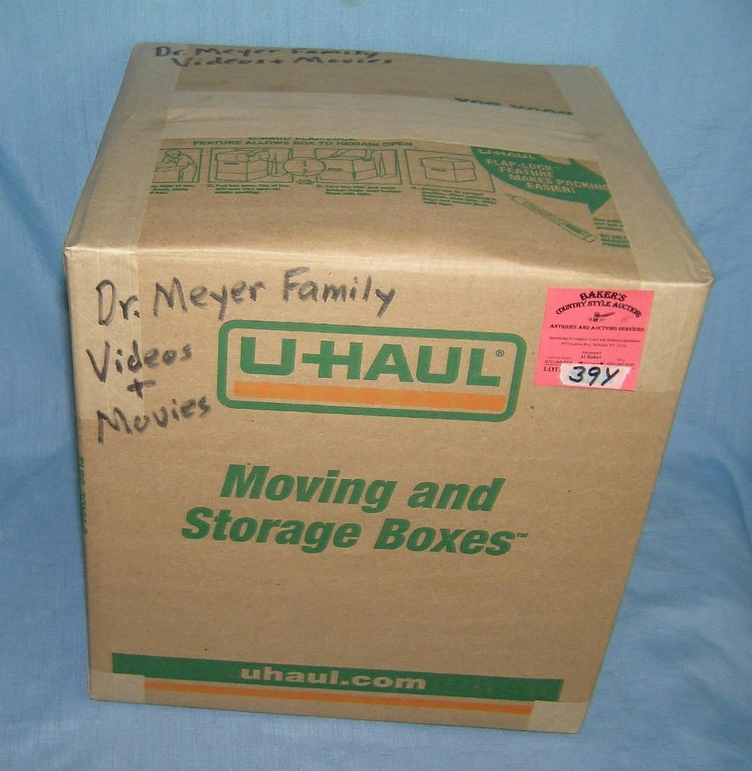 Moving and Storage Company mystery box lot marked Dr. Meyer family videos and movies part of a moving and storage company seized or unclaimed merchandise group sent to auction for liquidation est. value $50.00-60.00
