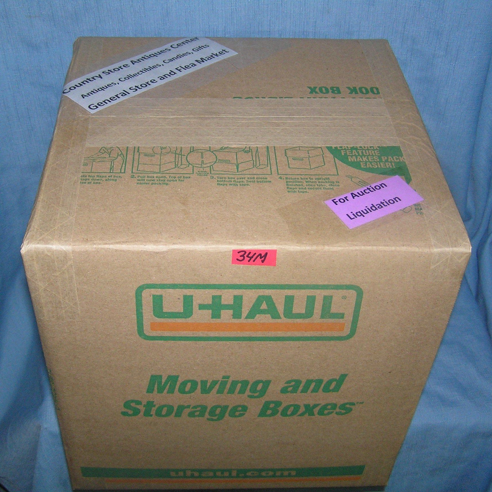 Moving and Storage Company mystery box lot marked The Country Store Antiques Center: Antiques, Collectibles, Candies, Gifts, General Store and Flea Market part of a moving and storage company seized or unclaimed merchandise group sent to auction for liquidation est. value $100.00-125.00