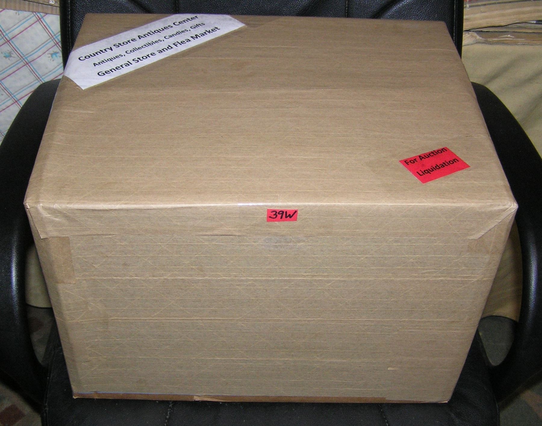 Moving and Storage Company mystery box lot marked The Country Store Antiques Center: Antiques, Collectibles, Candies, Gifts, General Store and Flea Market part of a moving and storage company seized or unclaimed merchandise group sent to auction for liquidation est. value $100.00-125.00