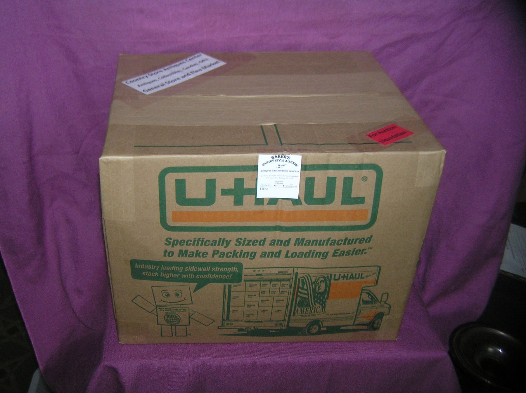 Moving and Storage Company mystery box lot marked Country Store Antiques Center: Antiques, Collectibles, Candies, Gifts, General Store and Flea Market part of a moving and storage company seized or unclaimed merchandise group sent to auction for liquidation est. value $150.00-$200.00