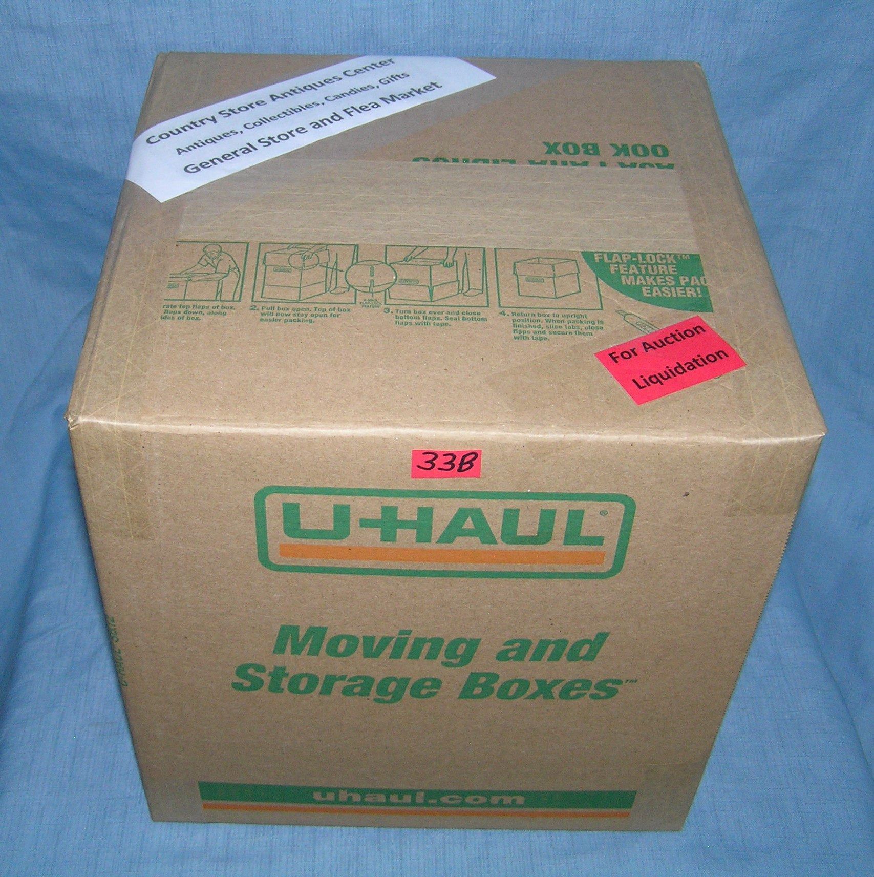 Moving and Storage Company mystery box lot marked The Country Store Antiques Center: Antiques, Collectibles, Candies, Gifts, General Store and Flea Market part of a moving and storage company seized or unclaimed merchandise group sent to auction for liquidation est. value 100.00-125.00