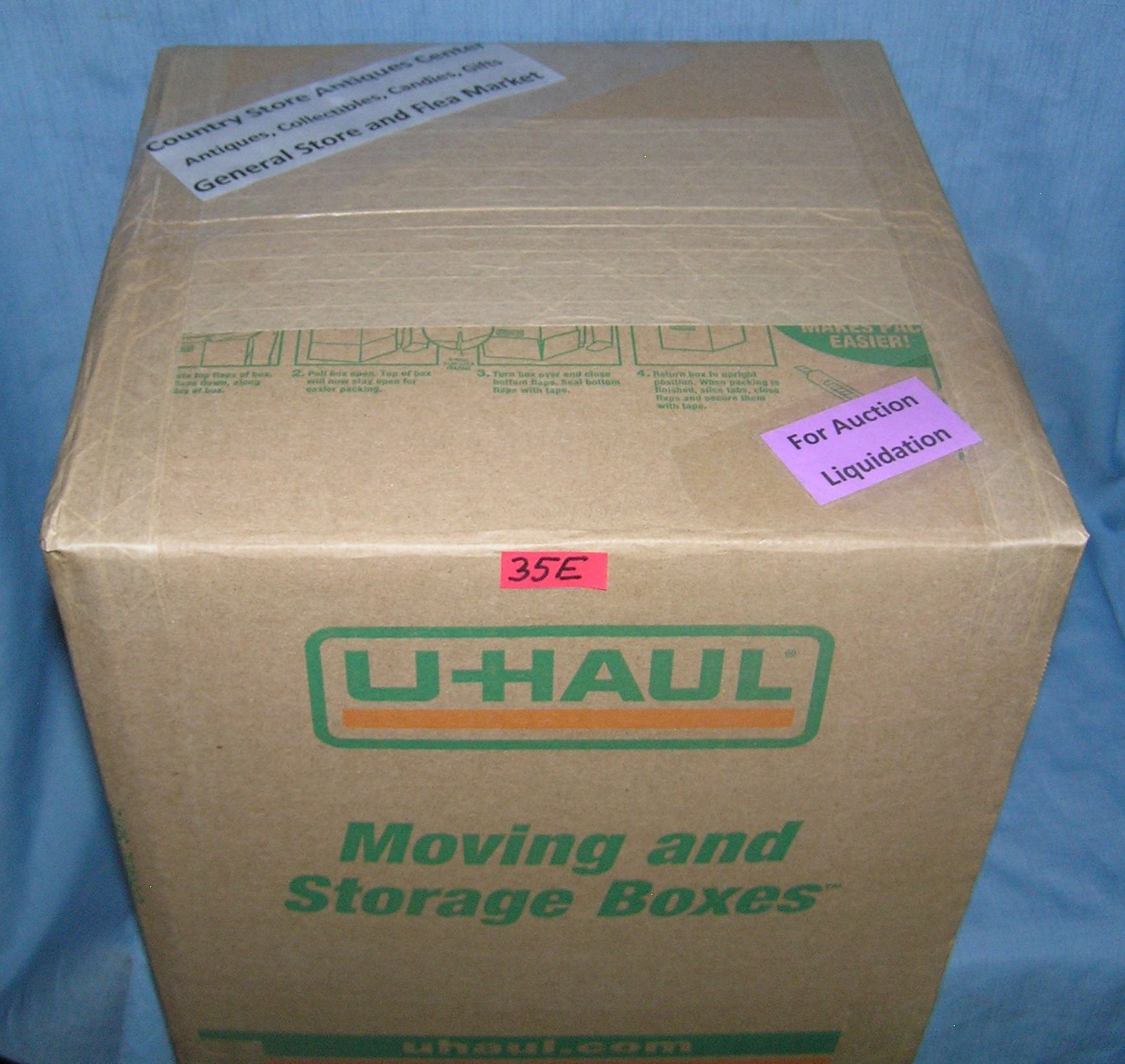 Moving and Storage Company mystery box lot marked The Country Store Antiques Center: Antiques, Collectibles, Candies, Gifts, General Store and Flea Market part of a moving and storage company seized or unclaimed merchandise group sent to auction for liquidation est. value 100.00-125.00