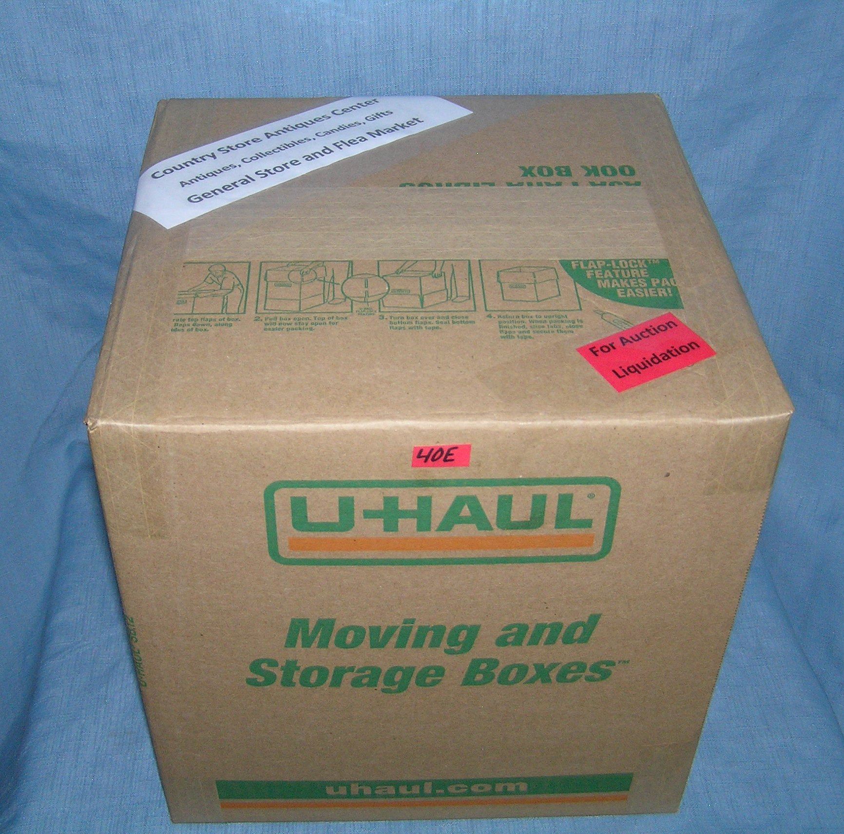 Moving and Storage Company mystery box lot marked Country Store Antiques Center: Antiques, Collectibles, Candies, Gifts, General Store and Flea Market part of a moving and storage company seized or unclaimed merchandise group sent to auction for liquidation est. value 125.00-150.00