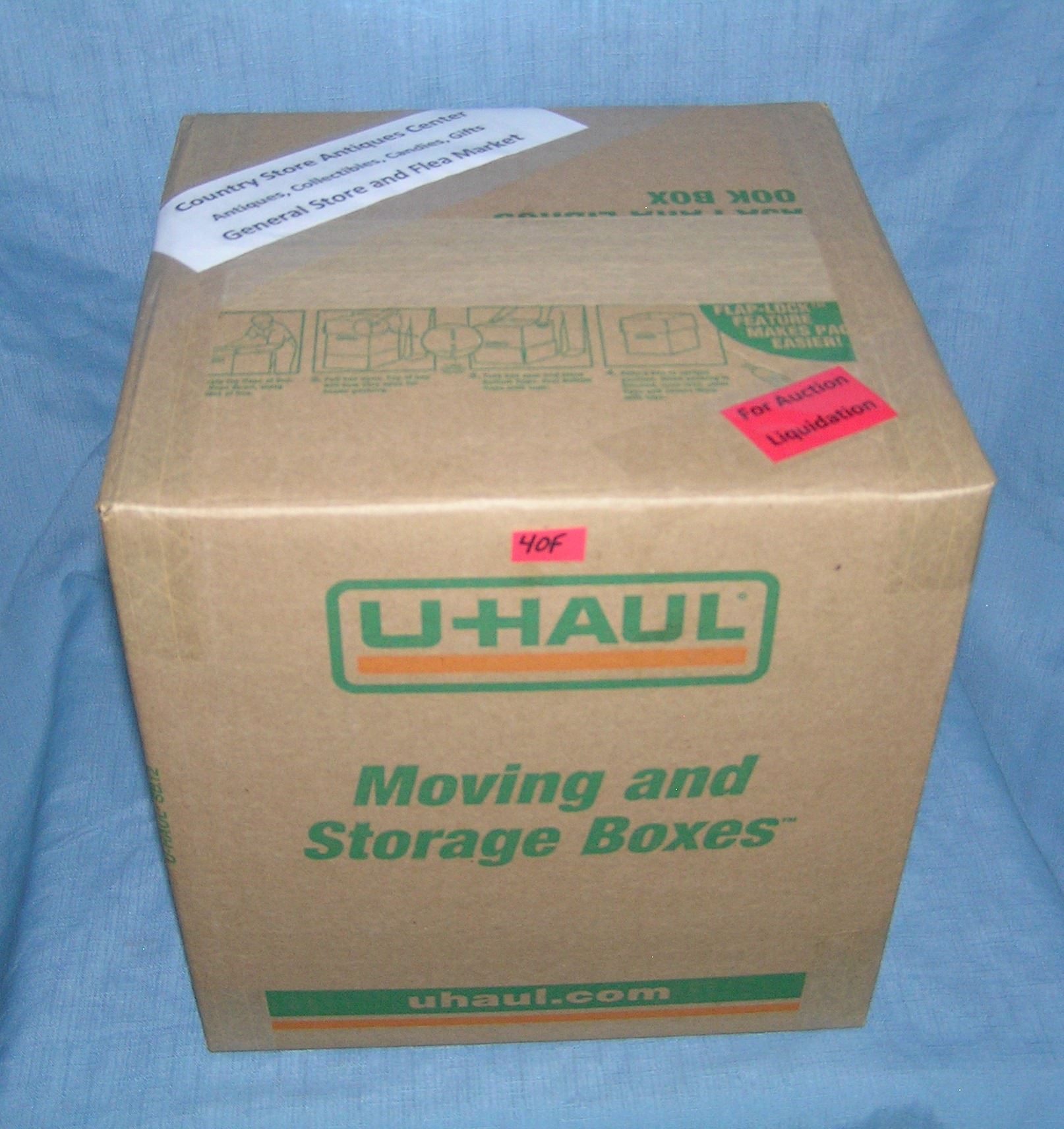 Moving and Storage Company mystery box lot marked Country Store Antiques Center: Antiques, Collectibles, Candies, Gifts, General Store and Flea Market part of a moving and storage company seized or unclaimed merchandise group sent to auction for liquidation est. value 125.00-150.00
