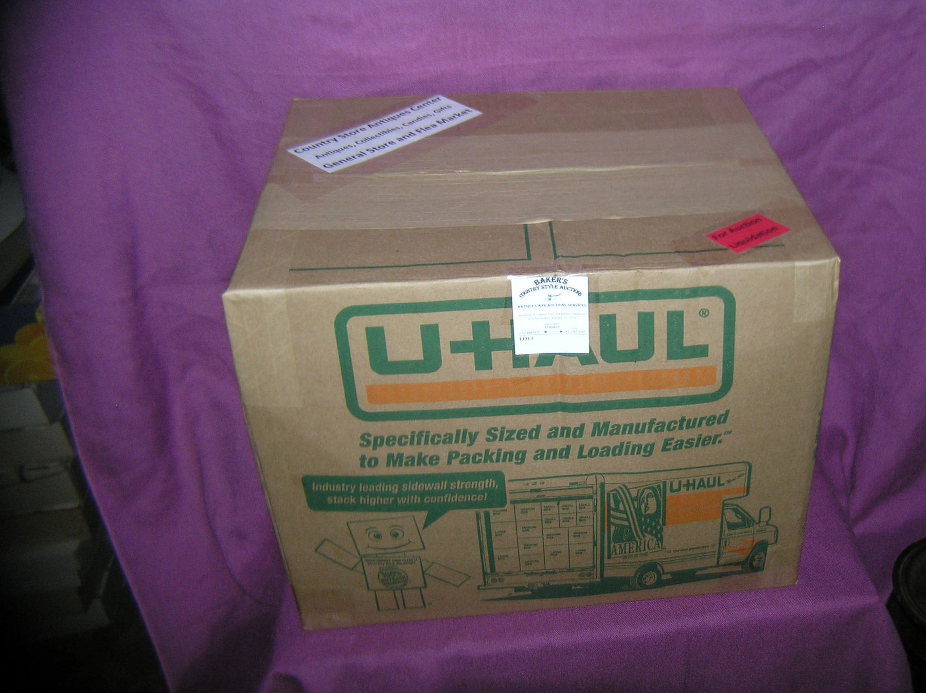 Moving and Storage Company mystery box lot marked Country Store Antiques Center: Antiques, Collectibles, Candies, Gifts, General Store and Flea Market part of a moving and storage company seized or unclaimed merchandise group sent to auction for liquidation est. value $150.00-$200.00