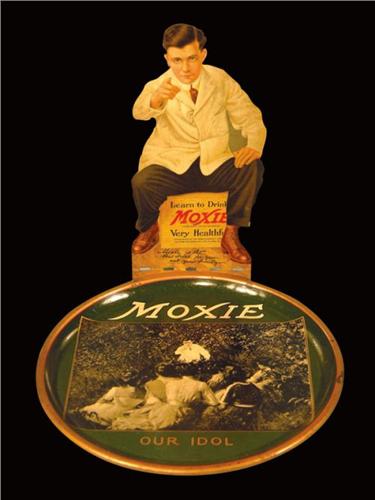 Extremely Rare Moxie Die Cut Tin Change Tray, entitled Moxie Our Idol. Some crazing otherwise excellent condition. 6 inch dia. X 6 inches tall.