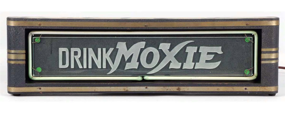 The can and green neon are circa 1930s, while the incised glass is a circa 1970s to 1980s replication or creation. Some case soiling and wear. Condition (Very Good - Excellent). Size 7 - 3/4" x 27".