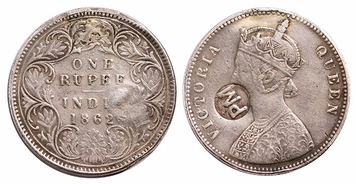 Mozambique, Carlos I, 1889-1908, Silver Rupee PM Countermark, struck on a British Indian Rupee, 1862, graded as very fine