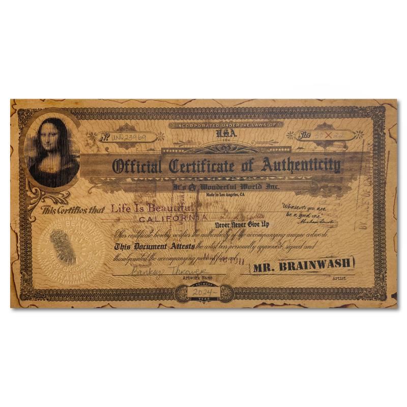 "Banksy Thrower" is a unique (UNIQ) mixed media on deckle edge paper by Mr. Brainwash, hand signed and bearing the thumbprint of the artist inverso. This piece comes custom framed. Includes Certificate of Authenticity. Measures approx. 34" x 26" (frame), 30" x 22" (image).