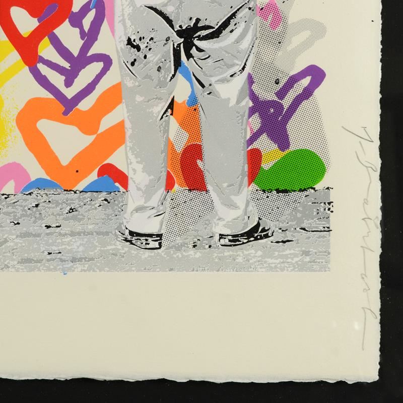 "Hollywood" is a limited edition silk screen print on paper by Mr Brainwash, numbered 17/125 and hand signed by the artist. The piece comes custom framed. Includes Letter of Authenticity. Measures approximately 40.5" x 33.5" (framed), 30" x 22.5" (image).