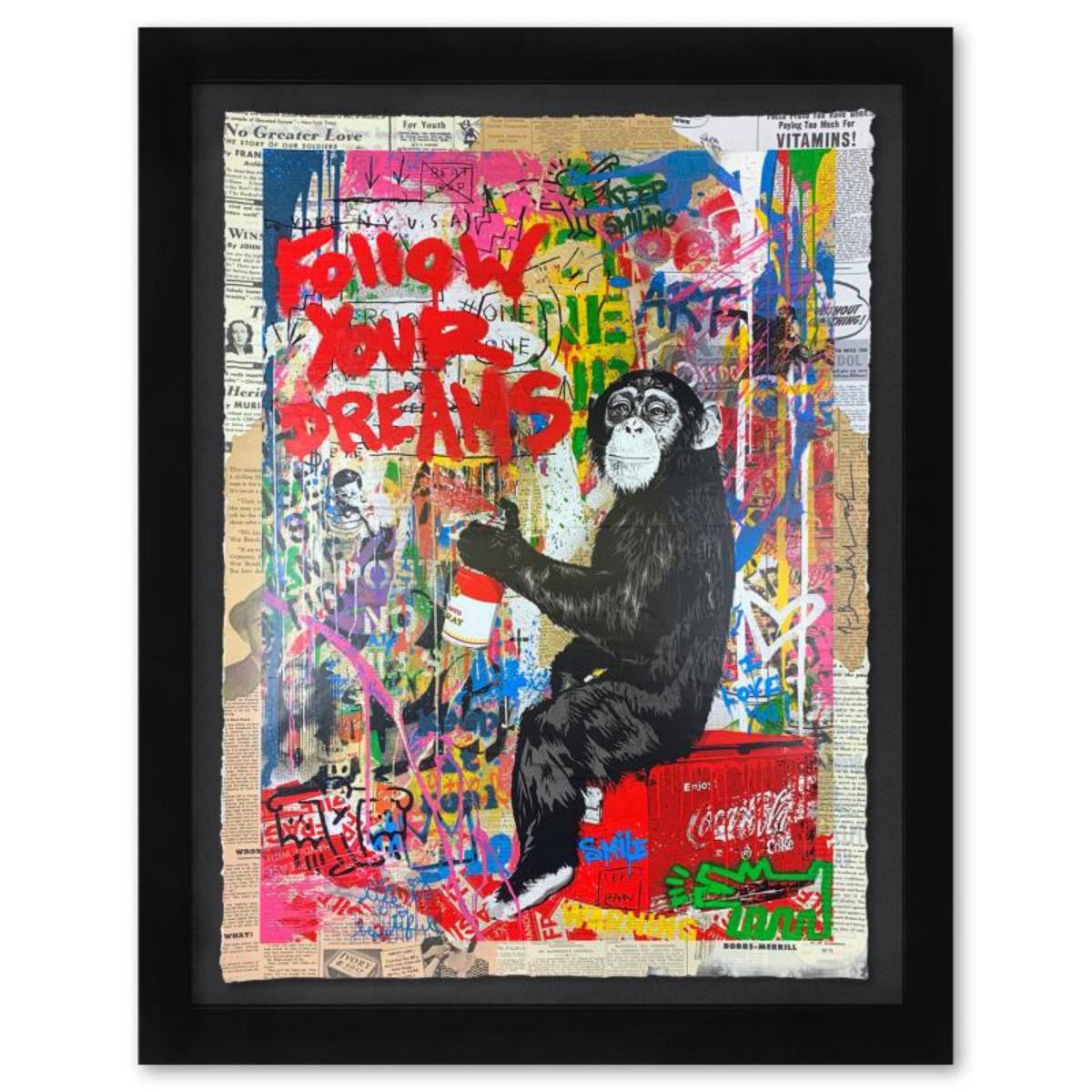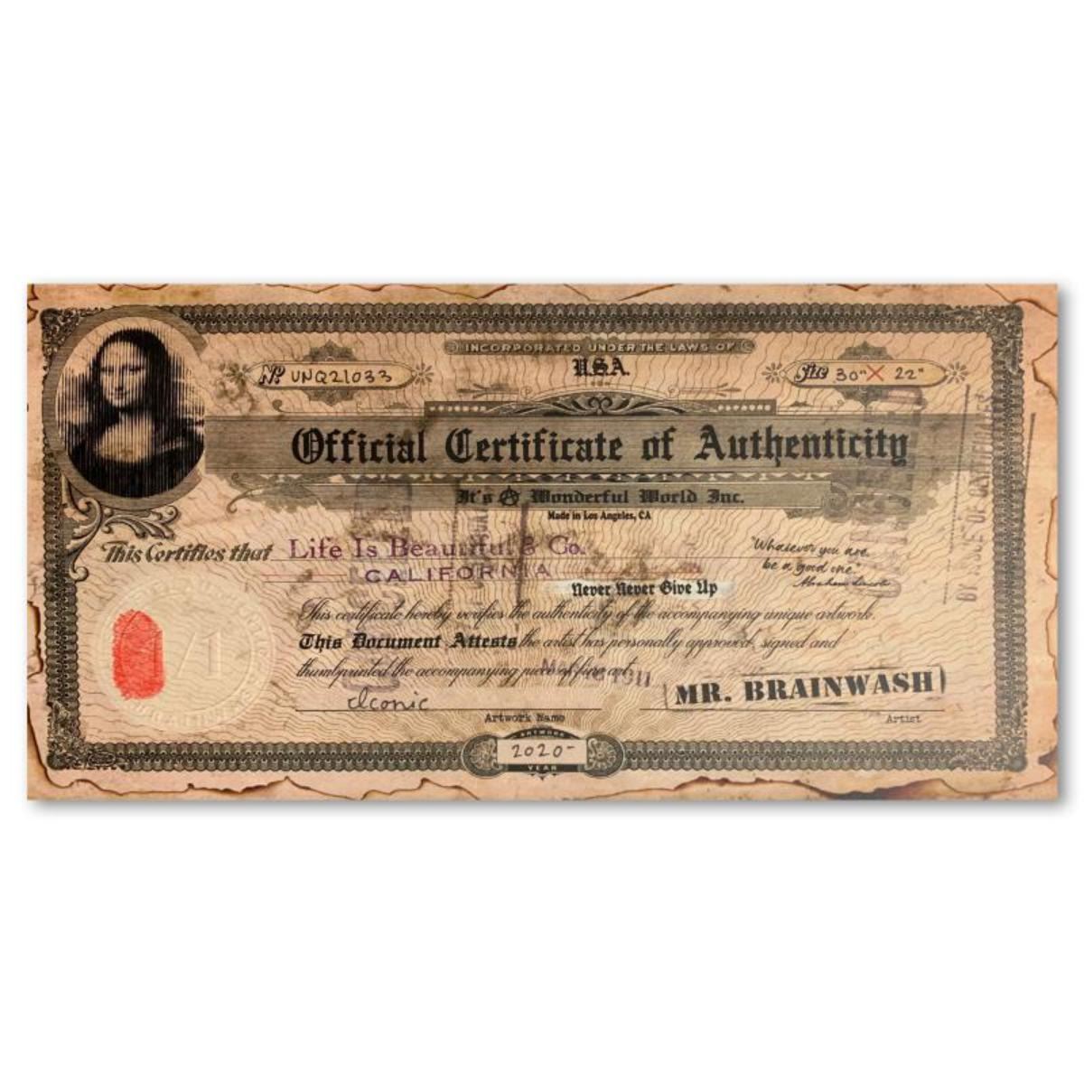 "Iconic" is a one-of-a-kind mixed media on deckle edge paper by Mr. Brainwash, hand signed by the artist. This is numbered 1/1 inverso and bears the thumbprint of the artist. This piece comes custom framed. Includes Certificate of Authenticity. Measures approx. 30" x 37" (framed), 22" x 30" (image).