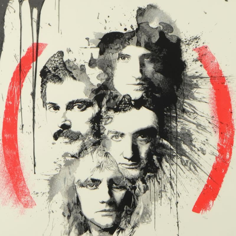 "Queen Product" is a limited edition silk screen print on paper by Mr Brainwash. The piece is hand signed by the artist and numbered 131/150. The piece comes custom framed and with a Letter of Authenticity. Measures approximately 30" x 30" (framed), 22" x 22" (image).