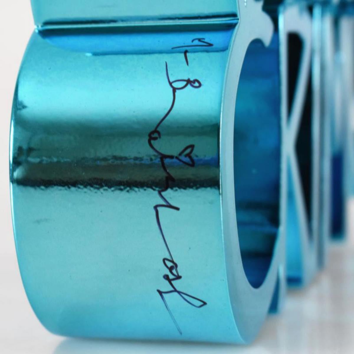 Artist: Mr. Brainwash. Medium: Resin Sculpture. Title: Art Is Not a Crime (Chrome Blue). Size (Unframed): 8" x 6.5". Certificate of Authenticity: Is included. Additional: Measures approx. 8" x 6.5" x 2. Reference# 16665.