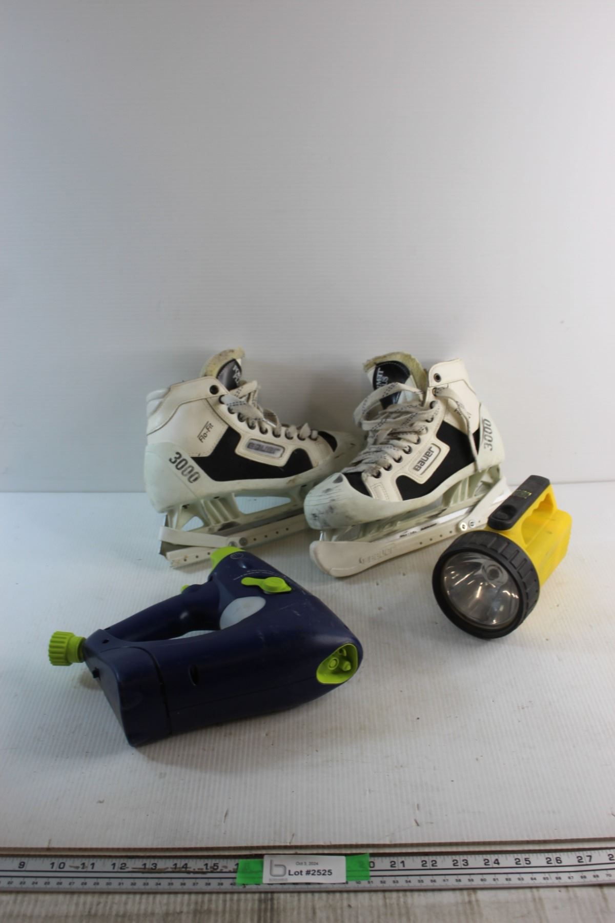 Mr. Clean AutoDry Soap Gun. Bauer Skates - Size 11'' and Flashlight - Tested