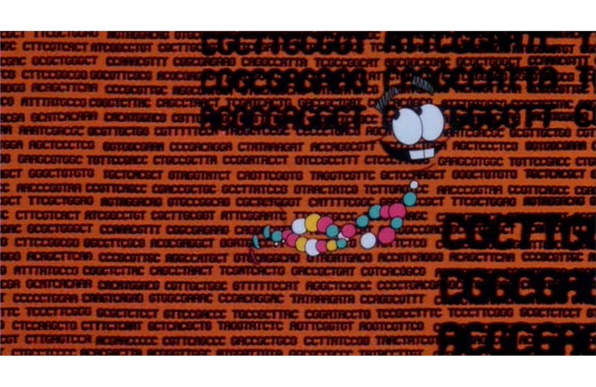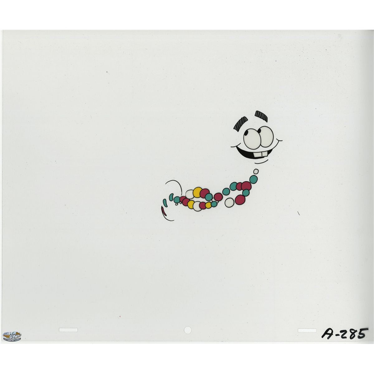 (Universal, 1993) This is a hand painted cel of Mr. DNA with no background, used in the cartoon played for the visitors of Jurassic Park. Color paint on Mylar, 12.5" x 10.5".