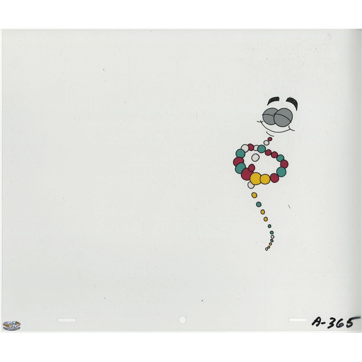 (Universal, 1993) This is a hand painted cel of Mr. DNA with no background, used in the cartoon played for the visitors of Jurassic Park. Color paint on Mylar, 12.5" x 10.5".