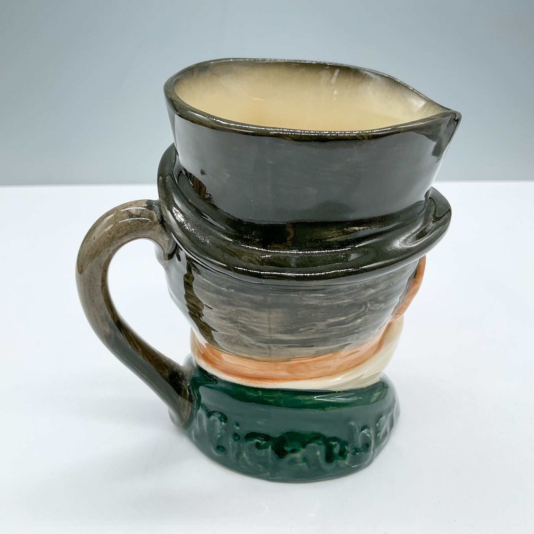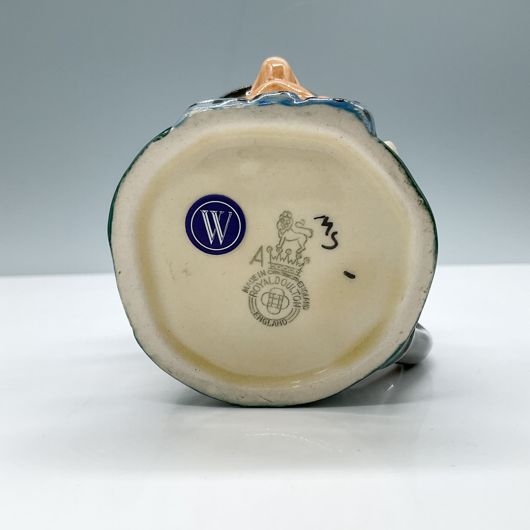 Black hat; green coat; blue polka-dot bow tie. Royal Doulton backstamp.