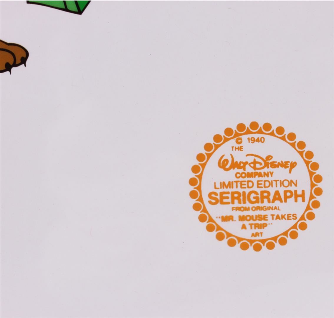 The Walt Disney Company Limited Edition Serigraph From Original "Mr. Mouse Takes A Trip" Art. Includes an authentication seal from Walt Disney in the lower right corner. Measures approximately 11x14 inches.