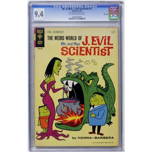 <B>Mr. & Mrs. J. Evil Scientist #3 File Copy (Gold Key, 1965) CGC NM 9.4 Off-white to white pages.</B></I> CGC notes, "From the Random House Archives." Overstreet 2007 NM- 9.2 value = $75. CGC census 7/07: 6 in 9.4, 2 higher.<BR><BR><b>Shipping:</b> Comics - Slabbed (certified) (<a target="_blank" href="http://www.heritageauctions.com/common/shipping.php">view shipping information</a>)