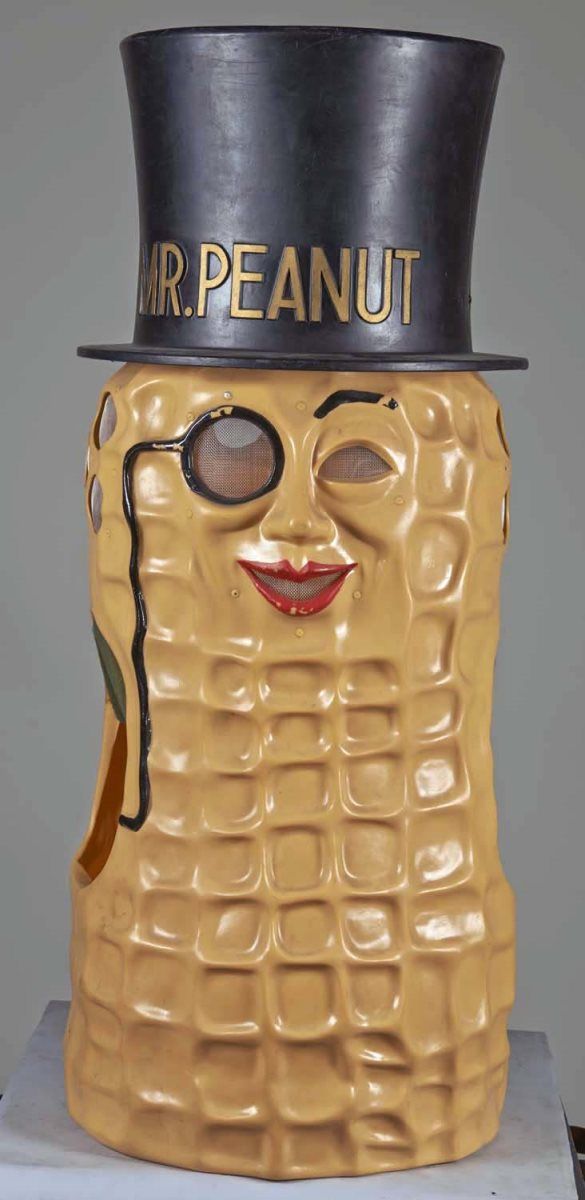 Tall plastic Mr. Peanut body with removable top hat for in store promotions. Body fits most sizes (easily up to 260 pounds). Condition (Very Good). Size 19" x 19" x 46".