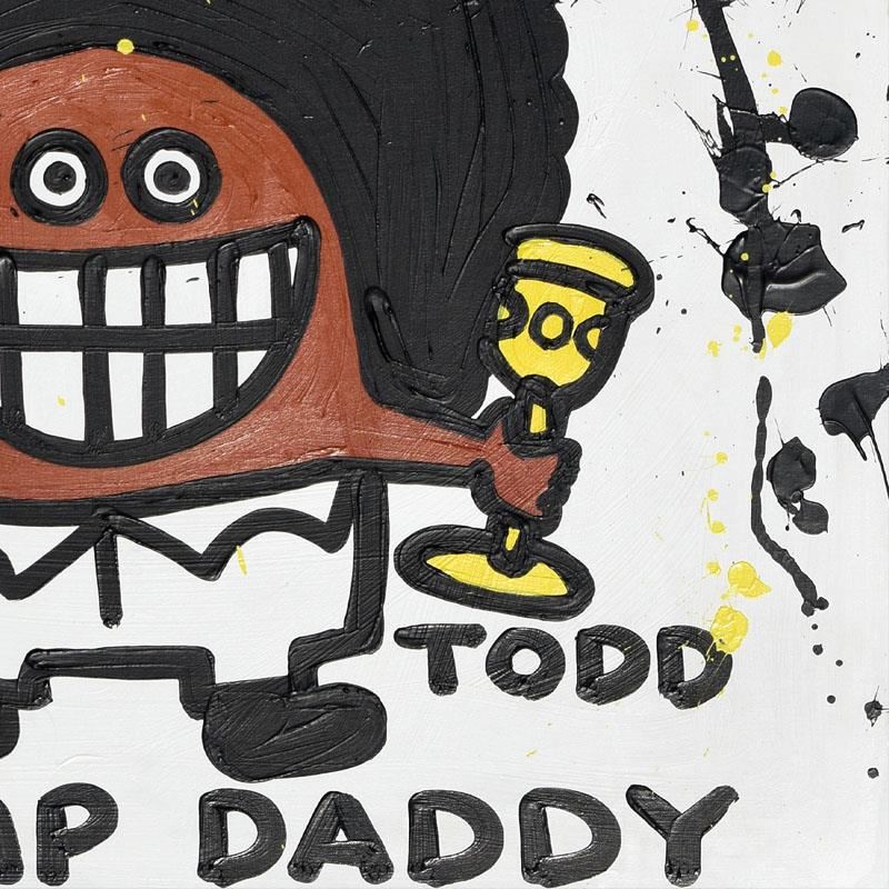 "Mr Pimp Daddy" is an original acrylic painting on gallery wrapped canvas by Todd Goldman, hand signed by the artist. Includes Letter of Authenticity. Measures approx. 36" x 36" (image). Due to the way this piece was stored there may be minor wear or signs of age (such as wear on the corners) but the piece is in overall good condition.
