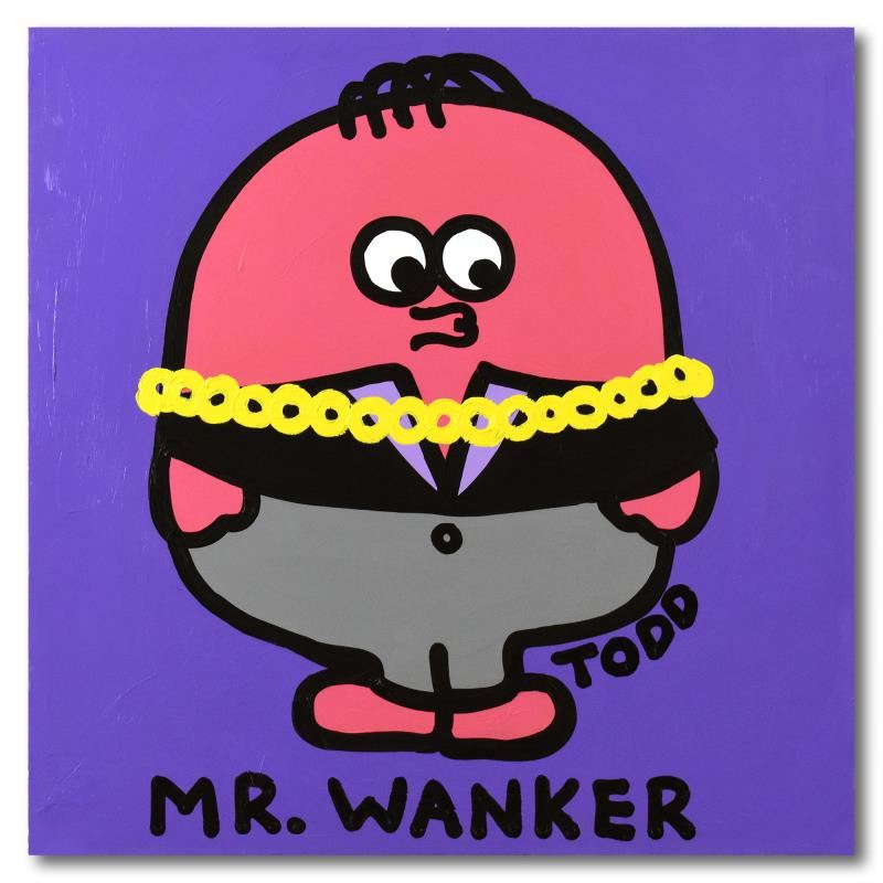 "Fancy Pants" is an original acrylic painting on canvas by Todd Goldman, hand signed by the artist. This piece comes gallery wrapped. Includes Letter of Authenticity. Measures approx. 36" x 36" (image). ** Please note: There is minor wear on the corners a