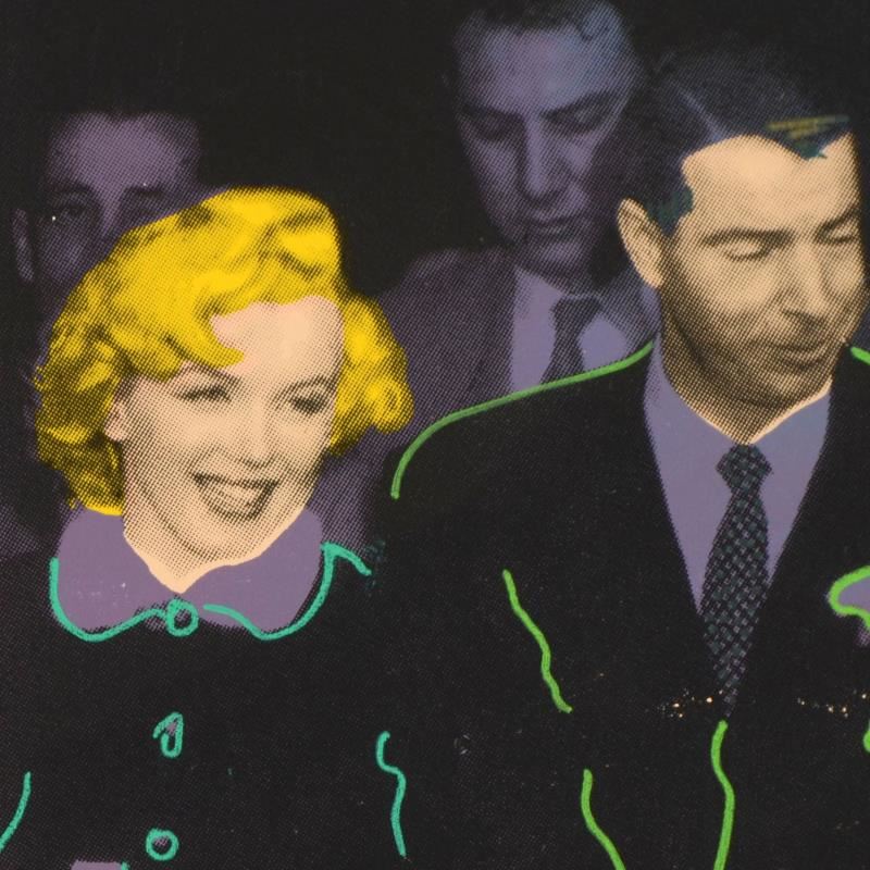 "Mr. and Mrs. DiMaggio" is a one-of-a-kind hand-pulled silkscreen and mixed media painting on canvas by Ringo Daniel Funes - protege of Andy Warhol's apprentice, Steve Kaufman. This piece is hand signed by the artist and Includes Certificate of Authenticity. This piece comes from the Andy Warhol Legacy Series. Due to the nature of the canvas these, pieces will need to be mounted for framing. Measures approx. 16" x 16" (image).