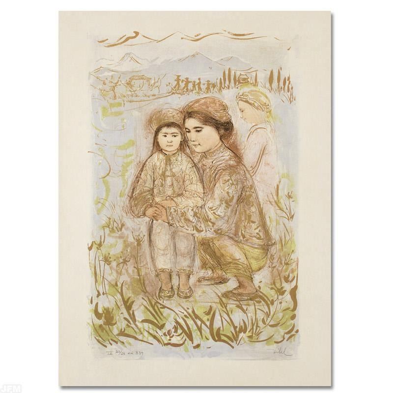 "Mrs. Hsu" is a limited edition lithograph on paper, numbered and hand signed by Edna Hibel (1917-2014). Includes Certificate of Authenticity! Measures approx. 22" x 30" (with border), 17" x 25.5" (image).