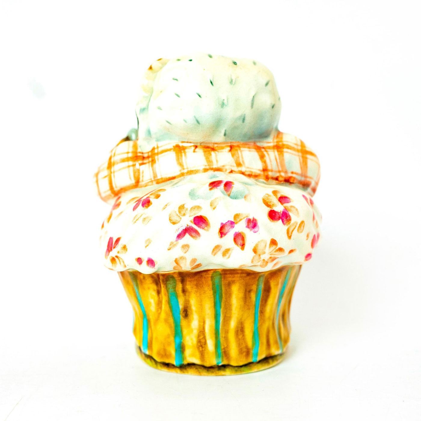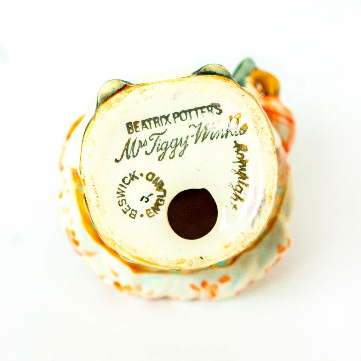Gold Circle Backstamp. Diagonal striped red- brown and white dress, green and blue striped skirt, white apron. Age related crazing.