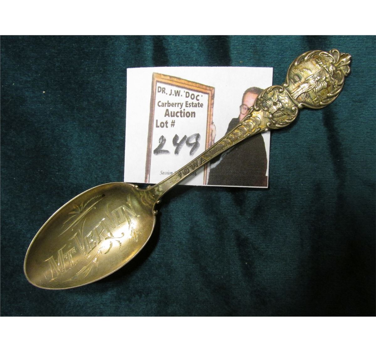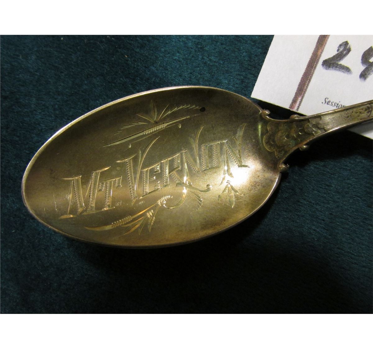 "Mt. Vernon, Iowa" Souvenir Spoon stamped on the reverse "Sterling", engraved with a "K" and "1911".