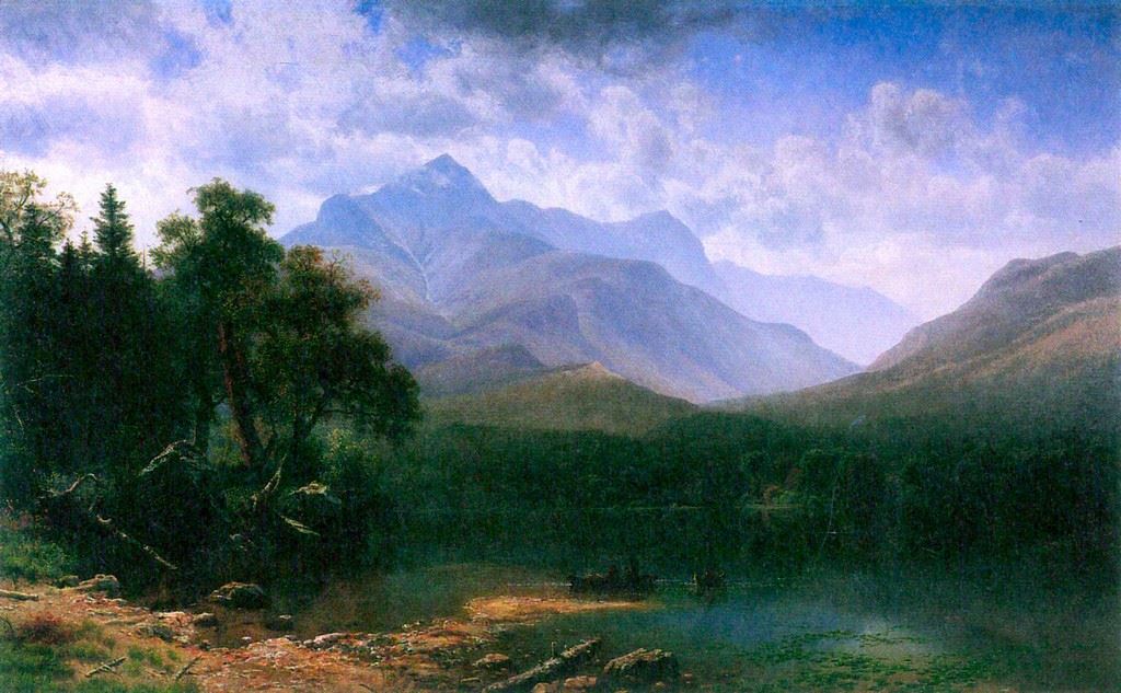 Artist: Albert Bierstadt (b. 1939) - Title: Mt. Washington - Medium: Fine Art Giclee on Canvas - Image Size: Approximately 12.25 inches x 20 inches - Framed: Unframed on Unstretched Canvas - Biography: Bierstadt became internationally renowned for his beautiful and enormous paintings of the newly accessible American west, and his works found their way into public and private collections at staggeringly high prices for his time. His popularity and wealth rose to tremendous heights only to fade as the interest in the Boston School and impressionism turned public taste away from his highly detailed landscapes suffused with golden light. -