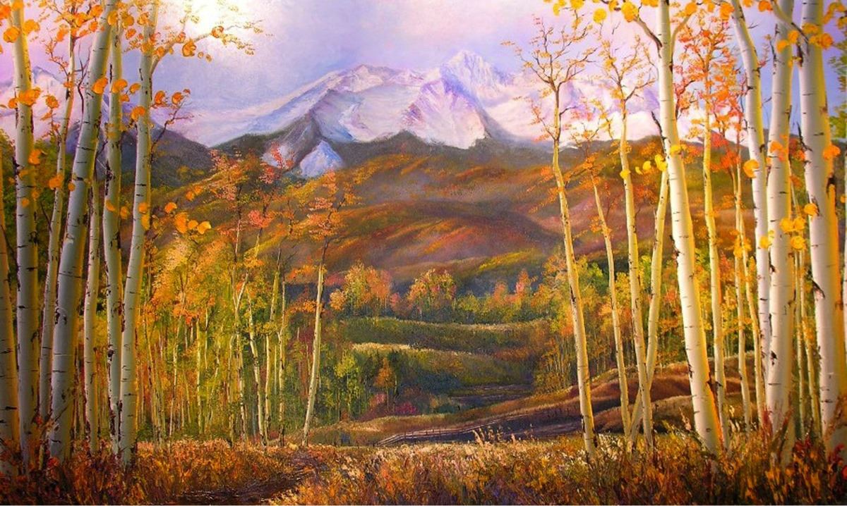 The snow capped mountains take your breath away and the magnificent fall colors. Working in oils, I have designed my own pallet knives which give my paintings a three dimensional appearance. Shipping from ZIP CODE 80118.