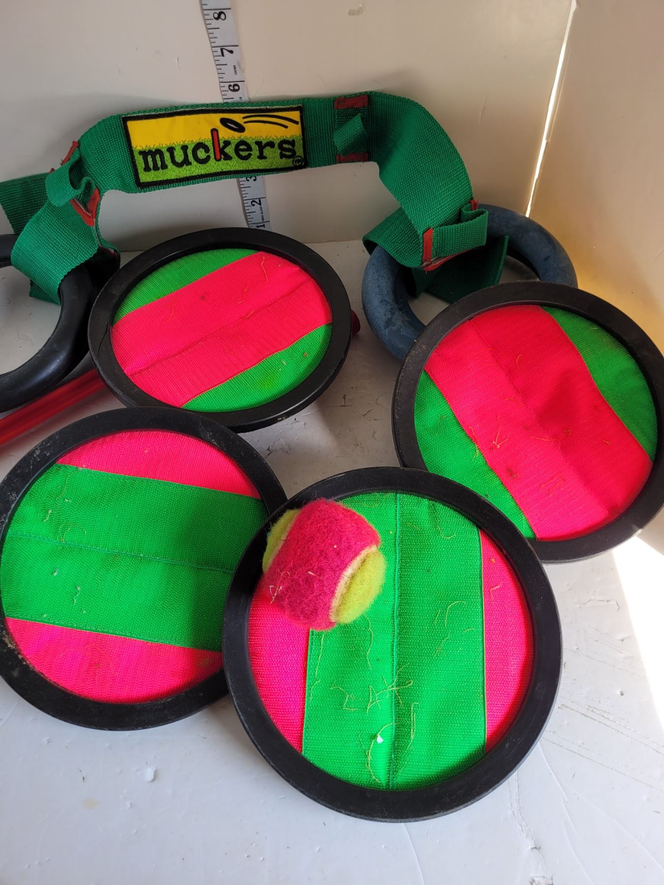 Muckers Ring Toss Game (Complete and Barely Used), Velcro Ball Game + Frisbee